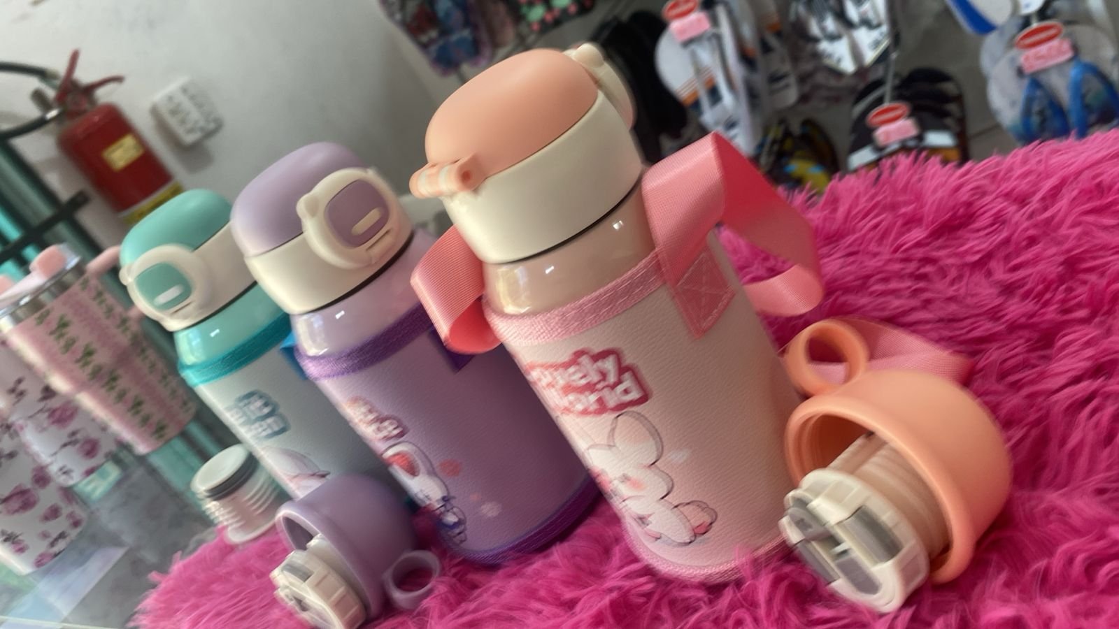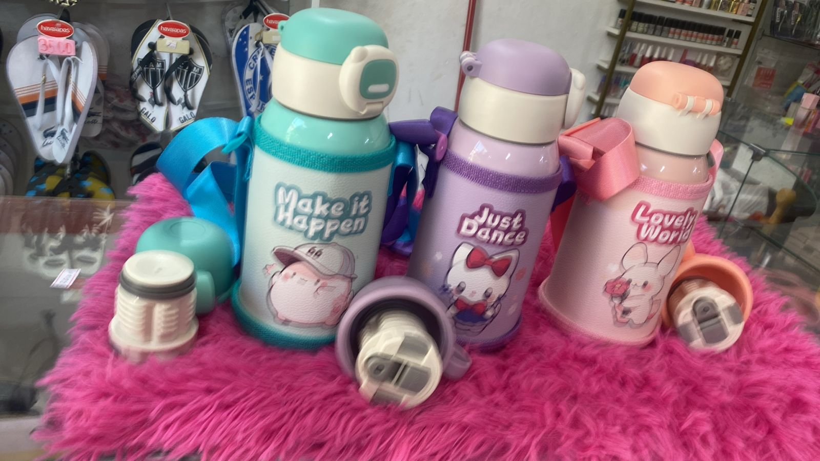 GARRAFA INFANTIL 600ML CORES COM BICO DE TROCA E BOLSINHA.