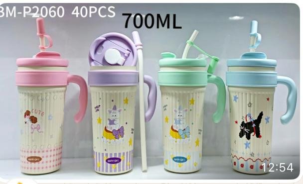 GARRAFA TERMICA 700ML COM CANUDO CORES