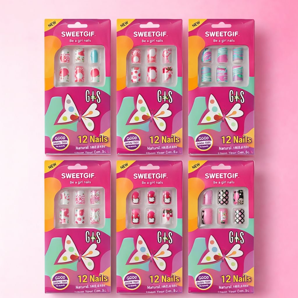 Kit com unhas postiças decoradas com diversos modelos,ideal para unhas lindas de forma pratica e rapida.