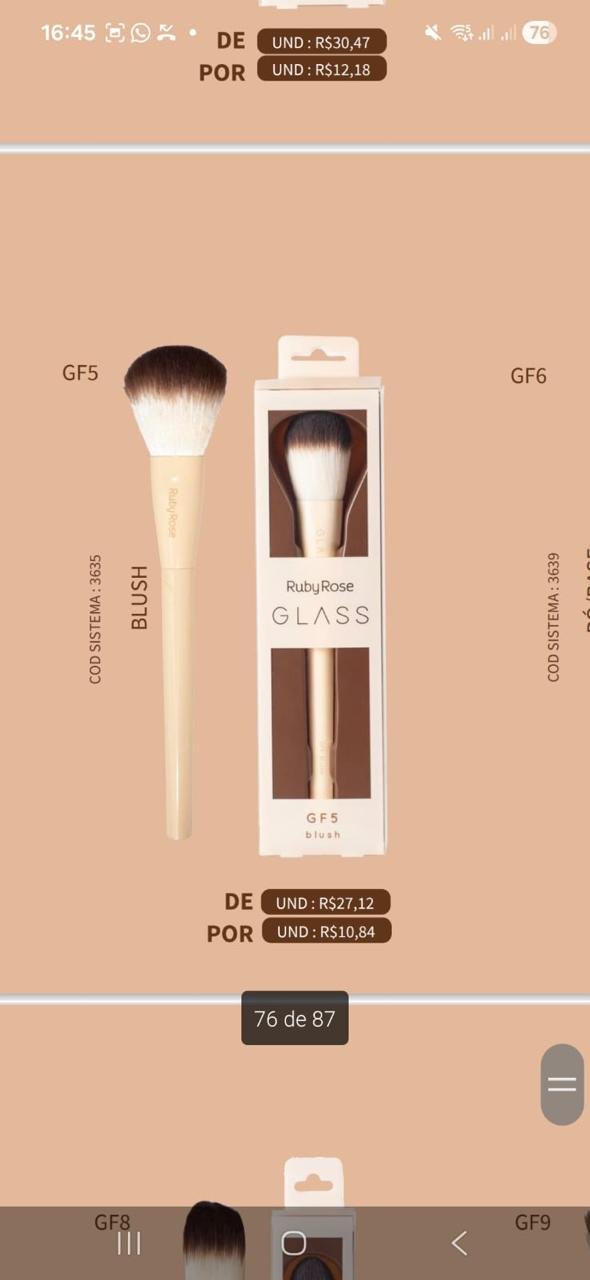 PINCEL GLASS GF5 BLUSH IDEAL PARA APLICAR BLUSH E PO ARREDONDADO E MACIO CERDAS SINTETICAS.
