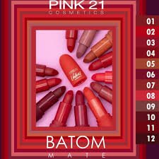 BATOM PINK 21 MATTE COM TOQUE AVELUDADO E LONGA DURACAO.